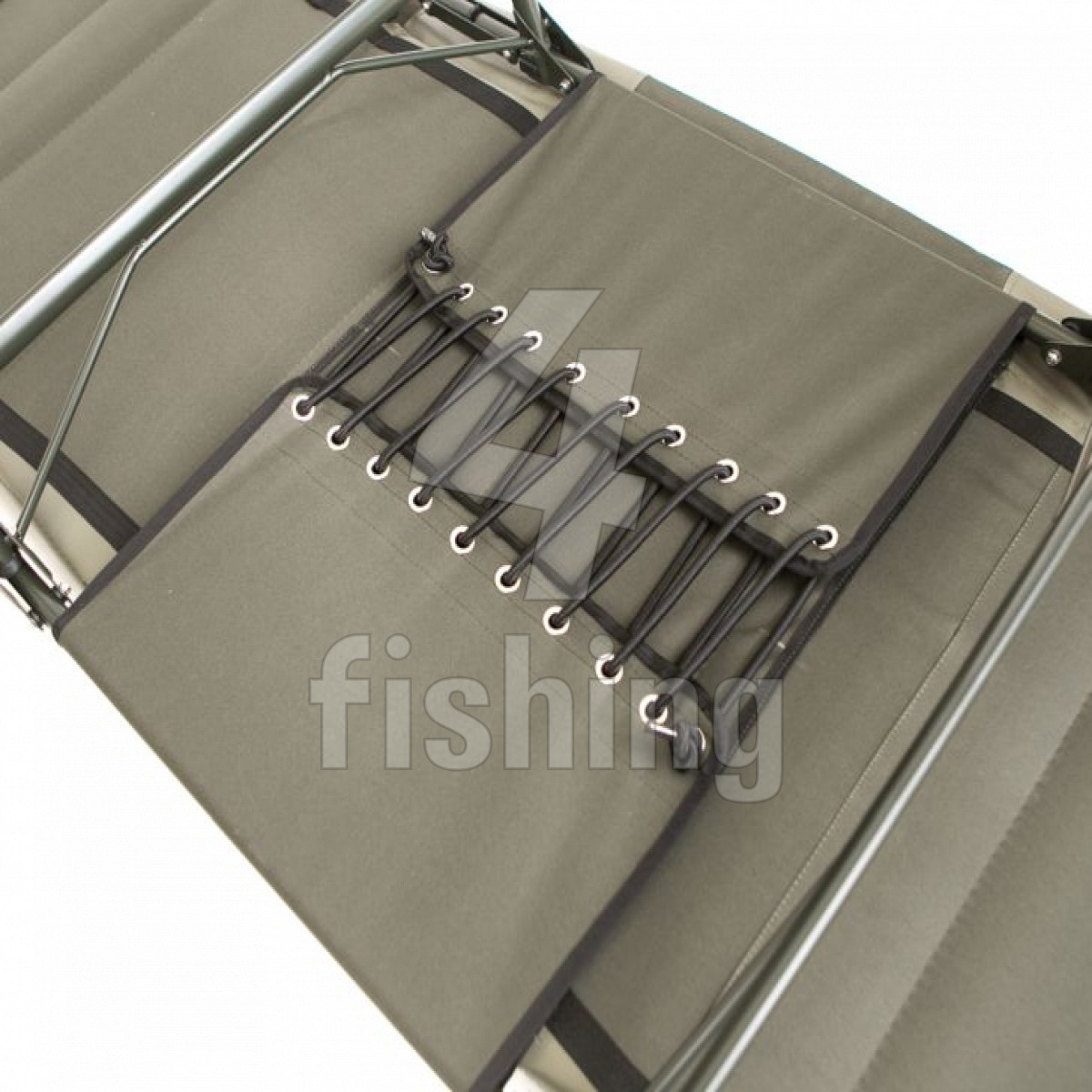 Okraj lehátka je vyrobený z polyesterovej tkaniny RIP STOP Camo, disponujúci ľahkou údržbou, vysokou životnosťou a je rýchloschnúci. Na údržbu postačí len vlhkú handričku.