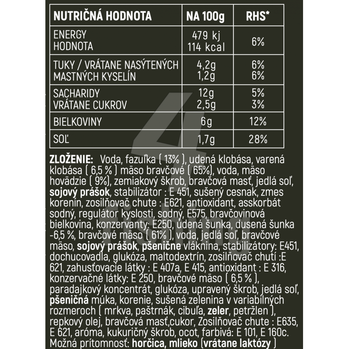 CELKOVÁ HMOTNOSŤ: 900g HMOTNOSŤ JEDLA: 400g DOBA TRVANLIVOSTI: 2roky
