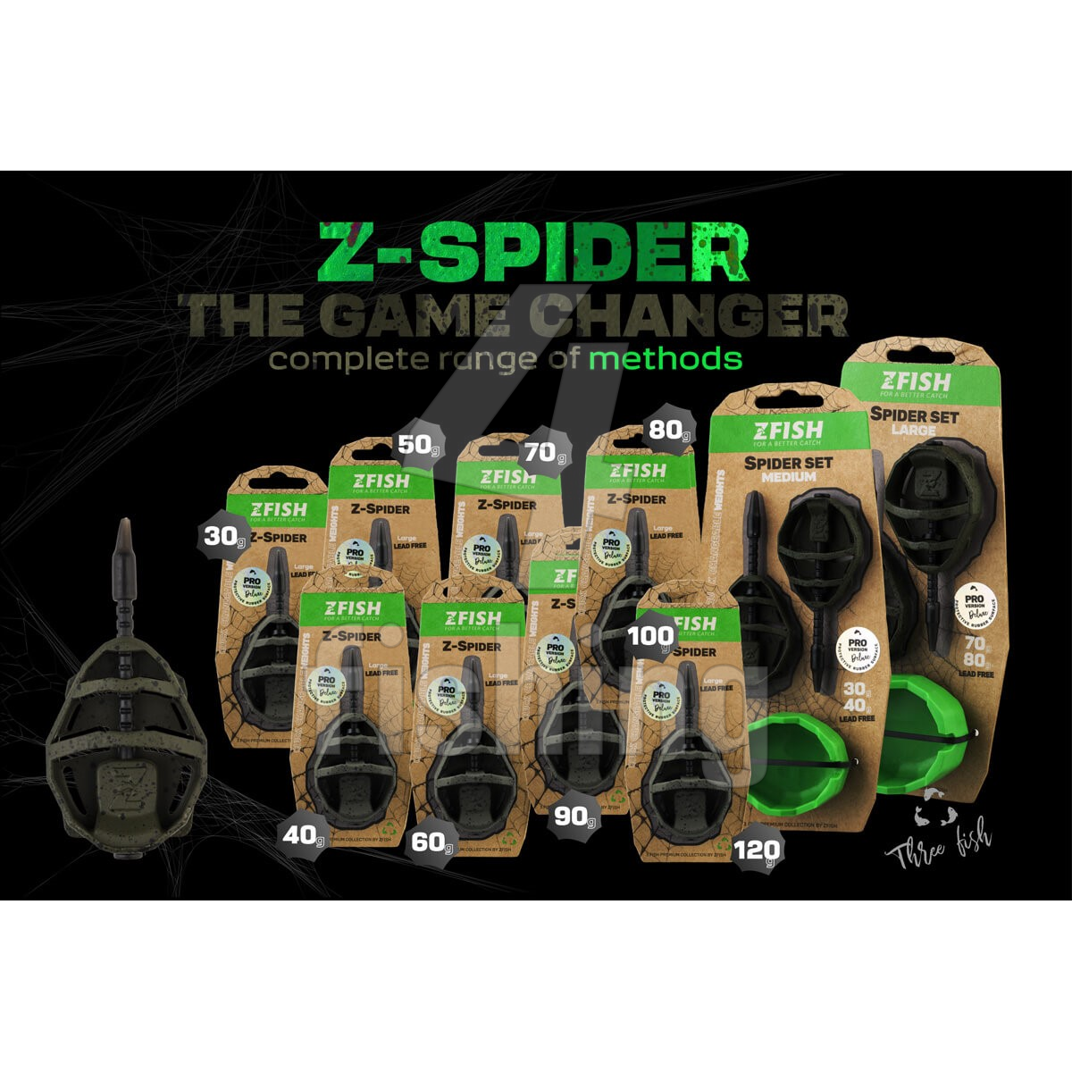 Inovatívne method feeder krmítko novej generácie Nový design Spider pre ešte lepšie rozloženie krmiva Špeciálna plôška pre presné umiestnenie nástrahy Jednoduchá a rýchla výmena záťaže vďaka vyberateľnej trubičke Ideálne vyváženie a isté dosadnutie ku dnu Bez olova - ekologické prevedenie Pogumované matne zelené prevedenie s čiernymi bodkami - skvelé maskovanie Dostupné v 2 veľkostiach a gramážach 30-120 g