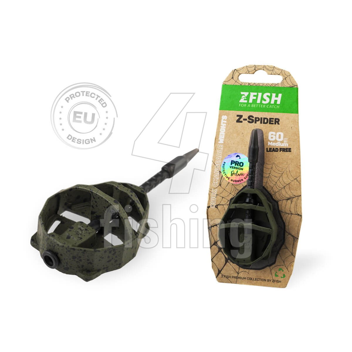 Inovatívne method feeder krmítko novej generácie Nový design Spider pre ešte lepšie rozloženie krmiva Špeciálna plôška pre presné umiestnenie nástrahy Jednoduchá a rýchla výmena záťaže vďaka vyberateľnej trubičke Ideálne vyváženie a isté dosadnutie ku dnu Bez olova - ekologické prevedenie Pogumované matne zelené prevedenie s čiernymi bodkami - skvelé maskovanie Dostupné v 2 veľkostiach a gramážach 30-120 g