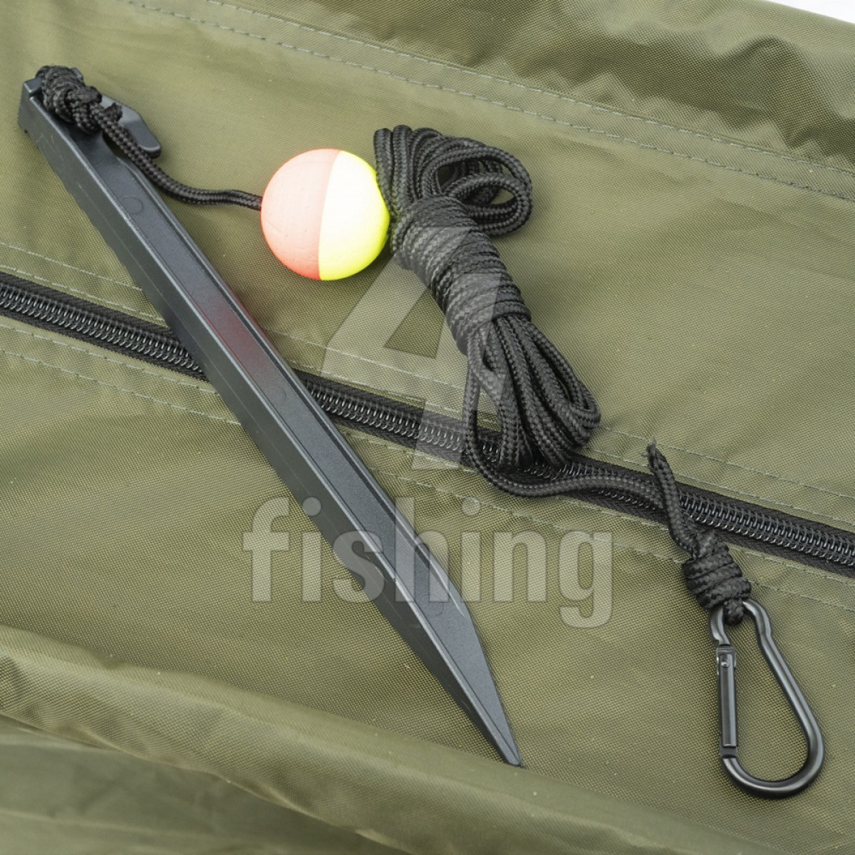 Vážiaci sak má štyri plaváky, ktoré majú reflexné pásky pre ľahkú viditeľnosť v noci. Vo vrchnej centrálnej časti je dvojitý popruh, ktorý je zakončený oceľovými krúžkami a je určený na pripojenie váhy. Dvojité zipsy sú po celej dĺžke. Veľký dôraz bol kladený na sieťové otvory, aby na úlovok prúdil dostatok prekysličenej vody. Z oboch bokov saku sú plastové „D“ krúžky, na ktoré je možné pripojiť 3m lano, ktoré je zakončené plavákom s plastovým kolíkom, ktorý je určený na zabezpečenie saku pri brehu. To všetko je ukryté vo vrecku na suchý zips. Je dodávaný vrátane nepremokavého obalu, ktorý je zvnútra pogumovaný, takže zabráni úniku vody a pachu zo saku.