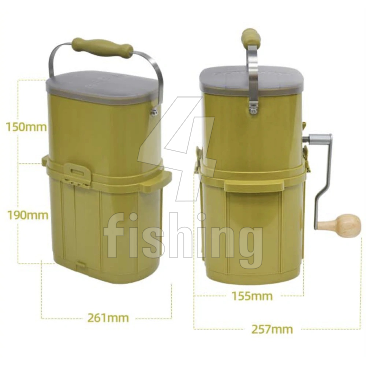 Balenie obsahuje: Drvič boilie, základné vedierko, odnímateľnú rukoväť, veká (drviče i vedra), nerezovú vložku a lopatku.