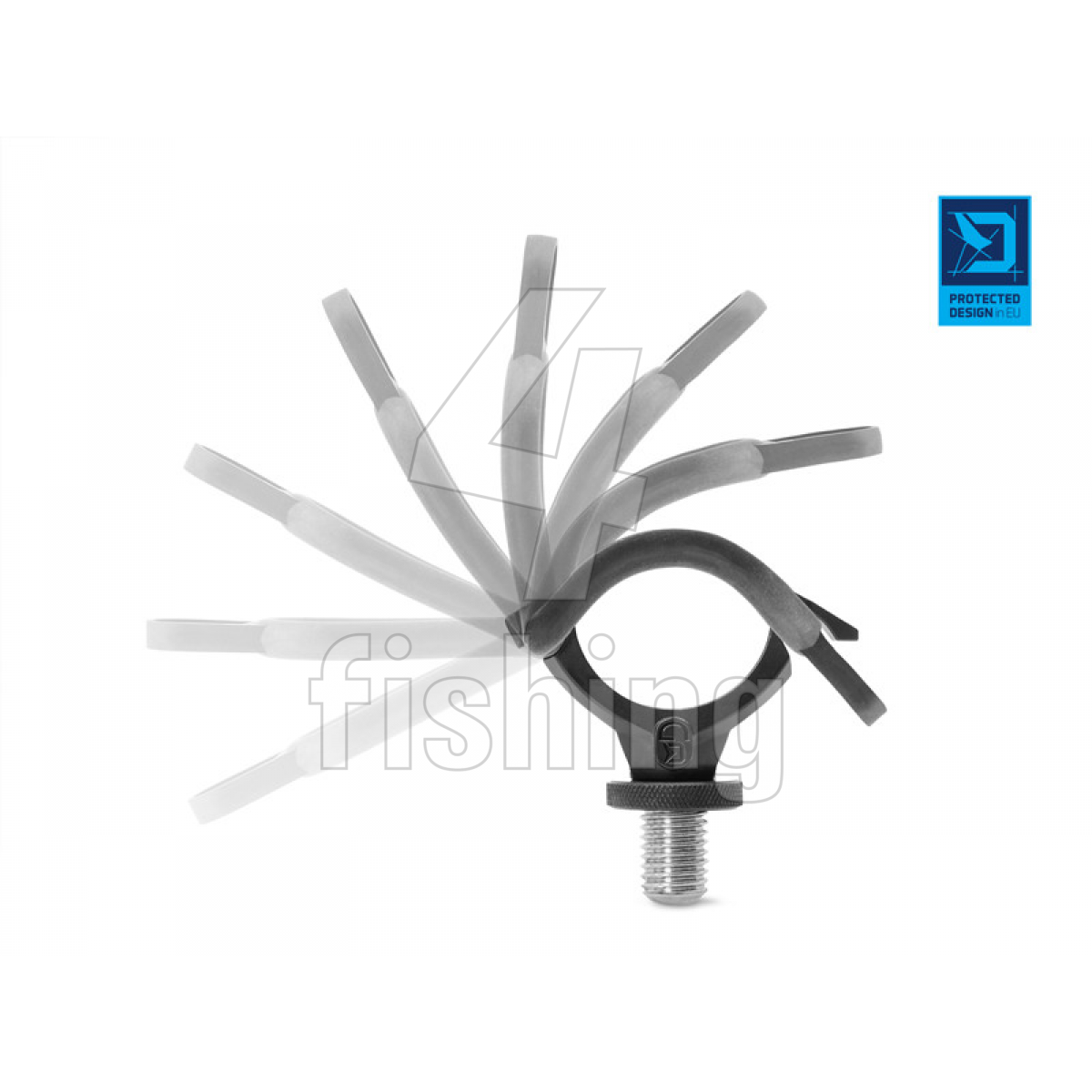 Jedinečný, patentovaný držiak, ktorý bol dômyselne navrhnutý tak, aby udržal Vaše prúty na svojom mieste aj v prípade veľmi prudkých záberov, kedy štandardné držiaky zlyhávajú.